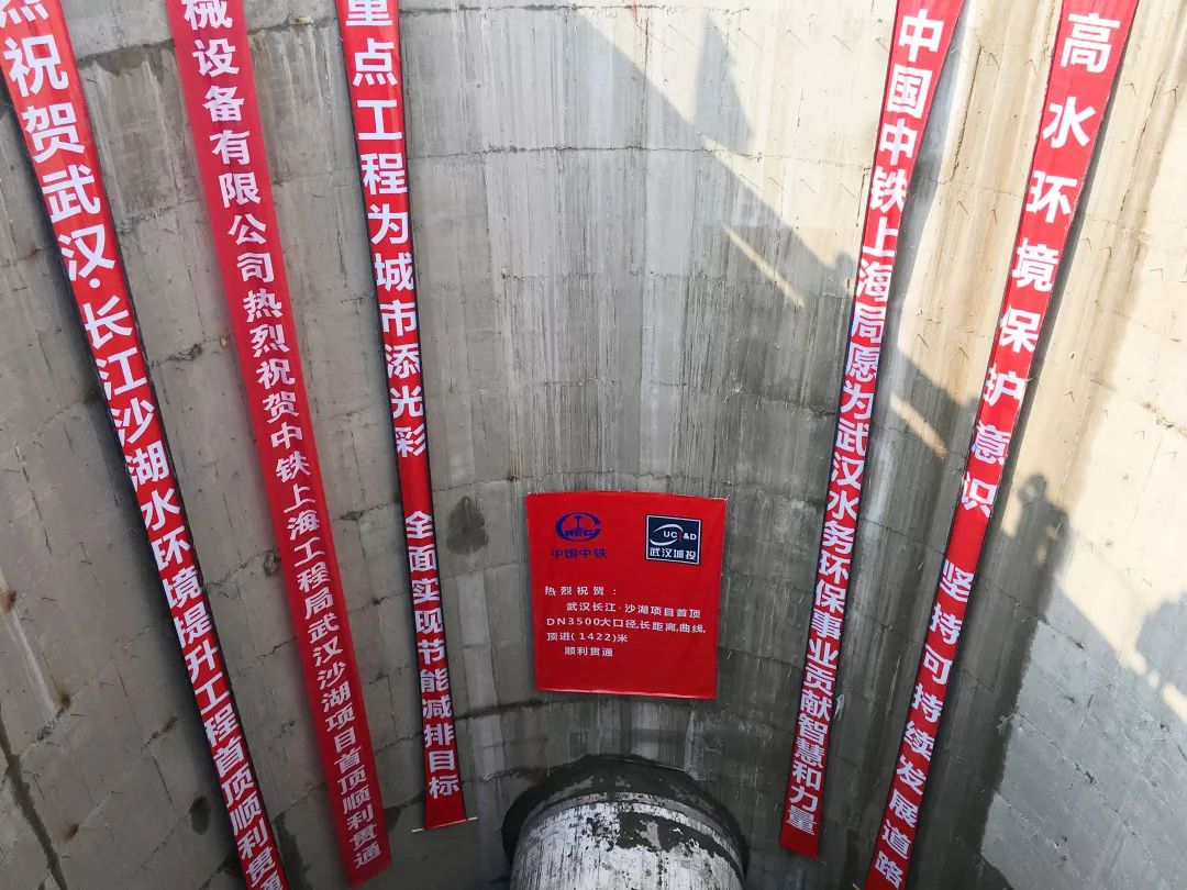 12月13日,公司承建的湖北省首例大口徑超長距離曲線水下頂管——長江、沙湖水環(huán)境提升工程沙湖公園W2-W3頂段順利貫通。長江、沙湖水環(huán)境提升工程中的管線工程南起于新生路泵站,北止于二郎廟污水處理廠,全長約5.78公里,需先后橫穿規(guī)劃武九綜合管廊、友誼大道隧道及現(xiàn)狀沙湖水面等多處節(jié)點(diǎn)。其中,沙湖公園W2-W3頂段長度1422.18米,順坡0.22%,為直線+曲線+直線頂管,其中曲線段長141.27米,曲線半徑為600米,施工難度大、技術(shù)含量高。頂管采用DN3500F型鋼承口式鋼筋混凝土管,管材外徑4140毫米。施工過程中,項(xiàng)目部認(rèn)真優(yōu)化施工方案,精心組織施工生產(chǎn),克服了地質(zhì)條件差、施工難度大、安全風(fēng)險(xiǎn)高等不利條件,頂管管道順利穿越沙湖。