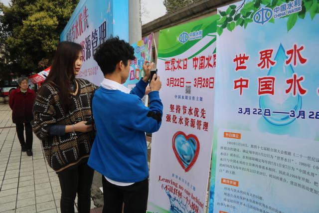 活動現場張貼著“世界水日”和“中國水周”宣傳掛圖、懸掛“實施國家節水行動 建設節水型社會”的宣傳標語。中鐵上海工程局集團市政工程有限公司18名志愿者向過往市民及大學生發放成都市節水用水宣傳小冊子,并通過圖片展示、節水知識問答等方式宣傳城市節水和水環境保護,志愿者們積極主動紛紛邀請過往群眾拿出手機掃描二維碼,點擊關注“水潤成都”微信公眾號,利用多媒體平臺,了解水務動態和相關政策法規。