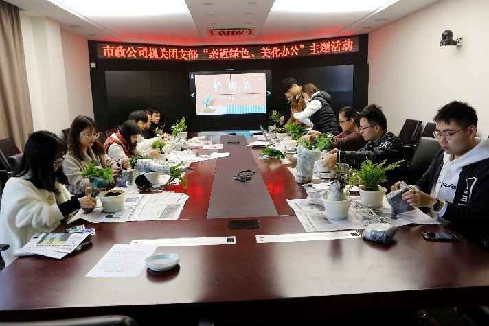 3月12日當天,機關團支部、淮安項目團支部、新沂安置房項目團支部分別組織開展了“親近綠色 美化辦公 ”為主題的室內活動?;顒蝇F場,大家依次將自己手中的花盆填滿土壤并用清水灌溉浸潤,完成了一盆綠植的種植。最后,大家一同簽下環保責任書并合影留念?;窗岔椖繄F支部書記柯立立說到:植樹節真不是非得植樹,植樹節的意義絕非局限于植樹,憑借每個人的心意為我們共同居住的環境貢獻一份綠色一份健康,這才是植樹的真正意義。場地和工作的限制,要想外出植樹幾乎是不可能的,相反,同樣具有綠化作用的盆栽卻能隨時養上一盆。