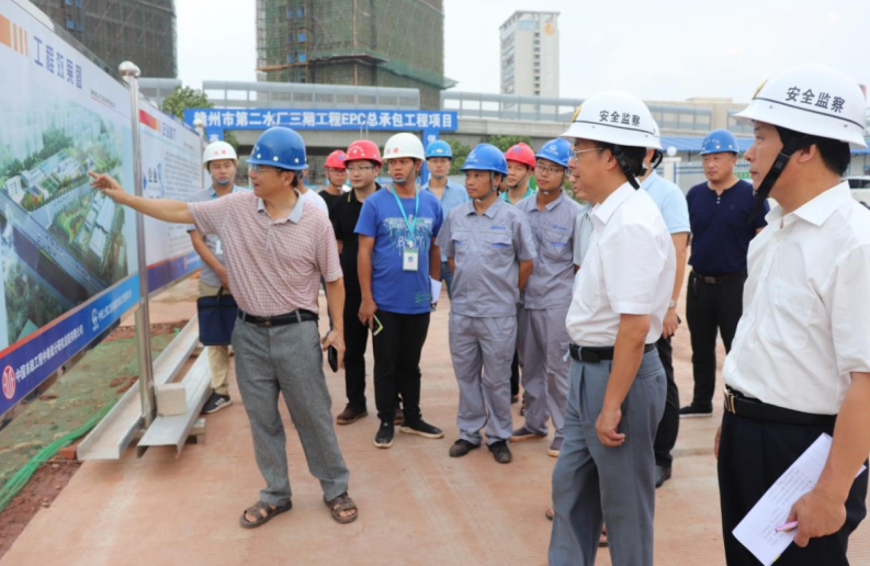 9月9日下午,贛州經(jīng)濟技術(shù)開發(fā)區(qū)管委會主任陳水連到公司承建的贛州第二水廠三期工程項目檢查指導(dǎo)工作,贛州經(jīng)開區(qū)住建局局長翁毅軍、水務(wù)集團副總經(jīng)理陳俊陪同。陳水連深入施工現(xiàn)場,聽取了項目工程概況、施工推進情況以及安全質(zhì)量管控等詳細匯報,重點查看了水廠的整體布局,以及水廠與客家大道交叉段控制性結(jié)構(gòu)聯(lián)絡(luò)通道的施工進度。陳水連強調(diào)安全責(zé)任大于天,在施工過程中,項目部要嚴格落實安全管控措施,確保施工安全,樹立良好的央企形象。同時要做到科學(xué)組織、務(wù)實求精、達標(biāo)創(chuàng)優(yōu),確保水廠建設(shè)按期完成。