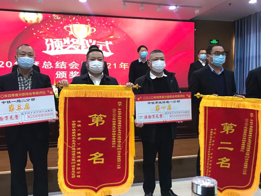 1月23日,在中鐵泰安(環境治理)有限公司2020年度總結會暨2021年工作會上,泰城水生態環境治理工程PPP項目部憑借在施工管理、安全生產、工程技術等方面的優異表現,榮獲四季度勞動競賽綜合考核評比總體第一、分部第一,年度勞動競賽綜合考核評比分部第三的佳績。