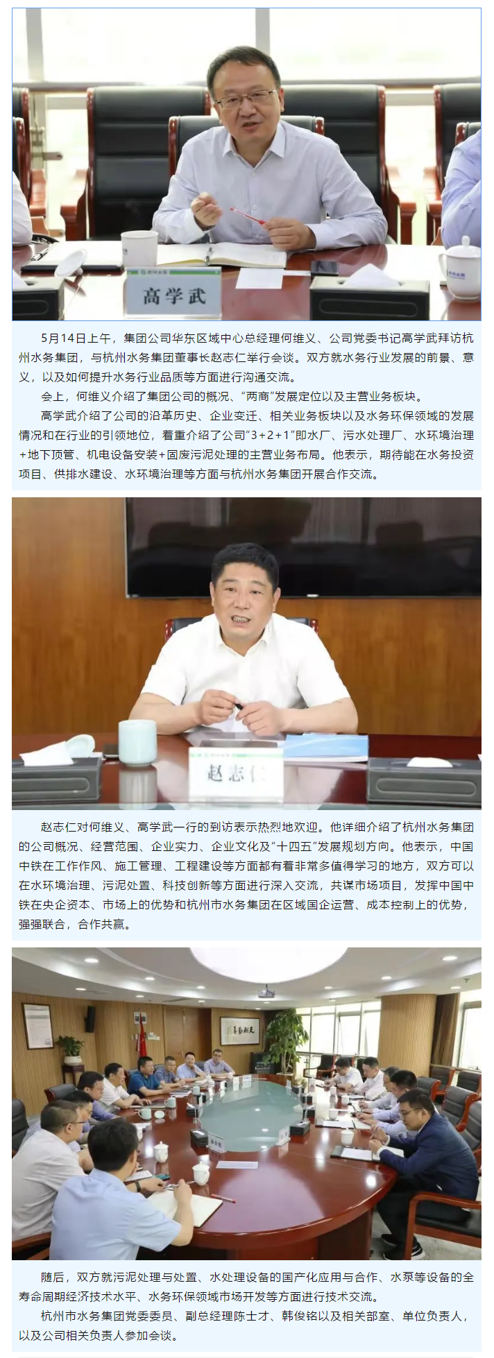 集團公司華東區域中心總經理何維義、公司黨委書記高學武拜訪杭州水務集團